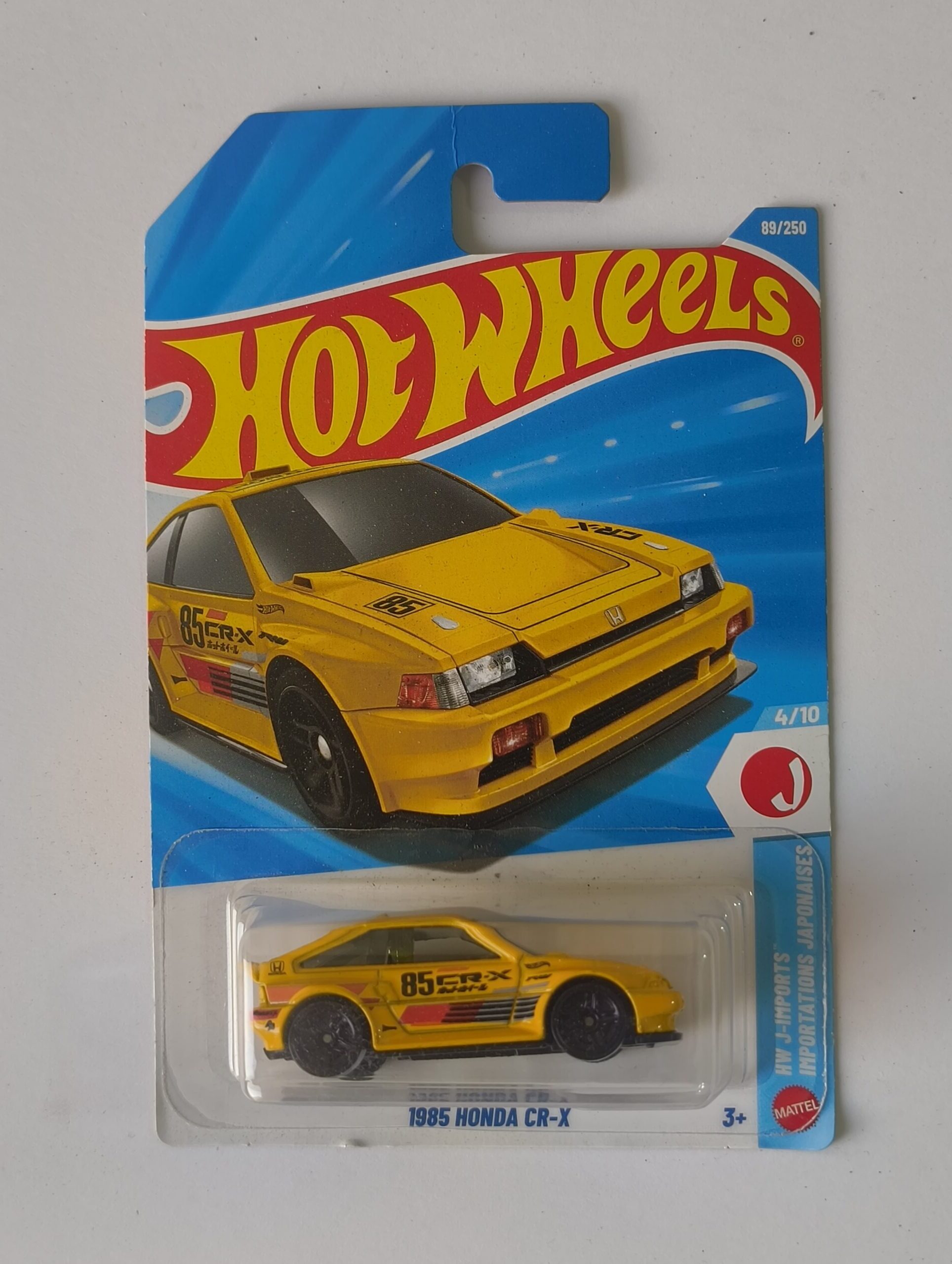 The Hot Wheels 1985 Honda CRX celebrates one of the most iconic compact sports hatchbacks ever produced. In the 1980s, the CRX stood out for its lightweight construction, sharp handling, and driver-focused design. It quickly gained a reputation as a fun, affordable performance car — eventually becoming a cult classic within the JDM community.